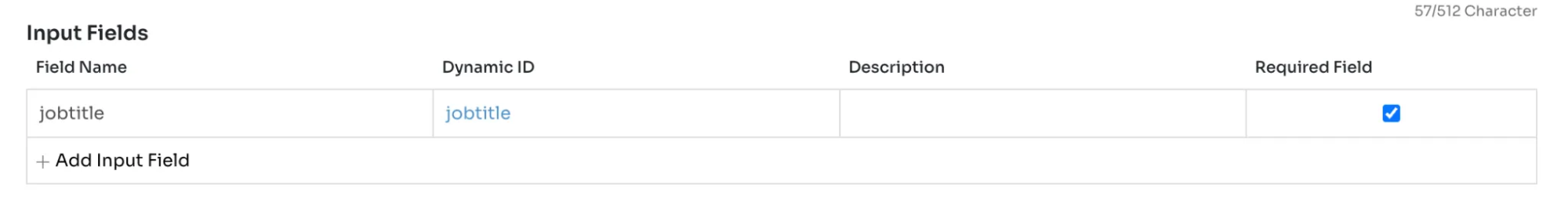 Configure the input field value during setup. Input values support static values or dynamic inputs.