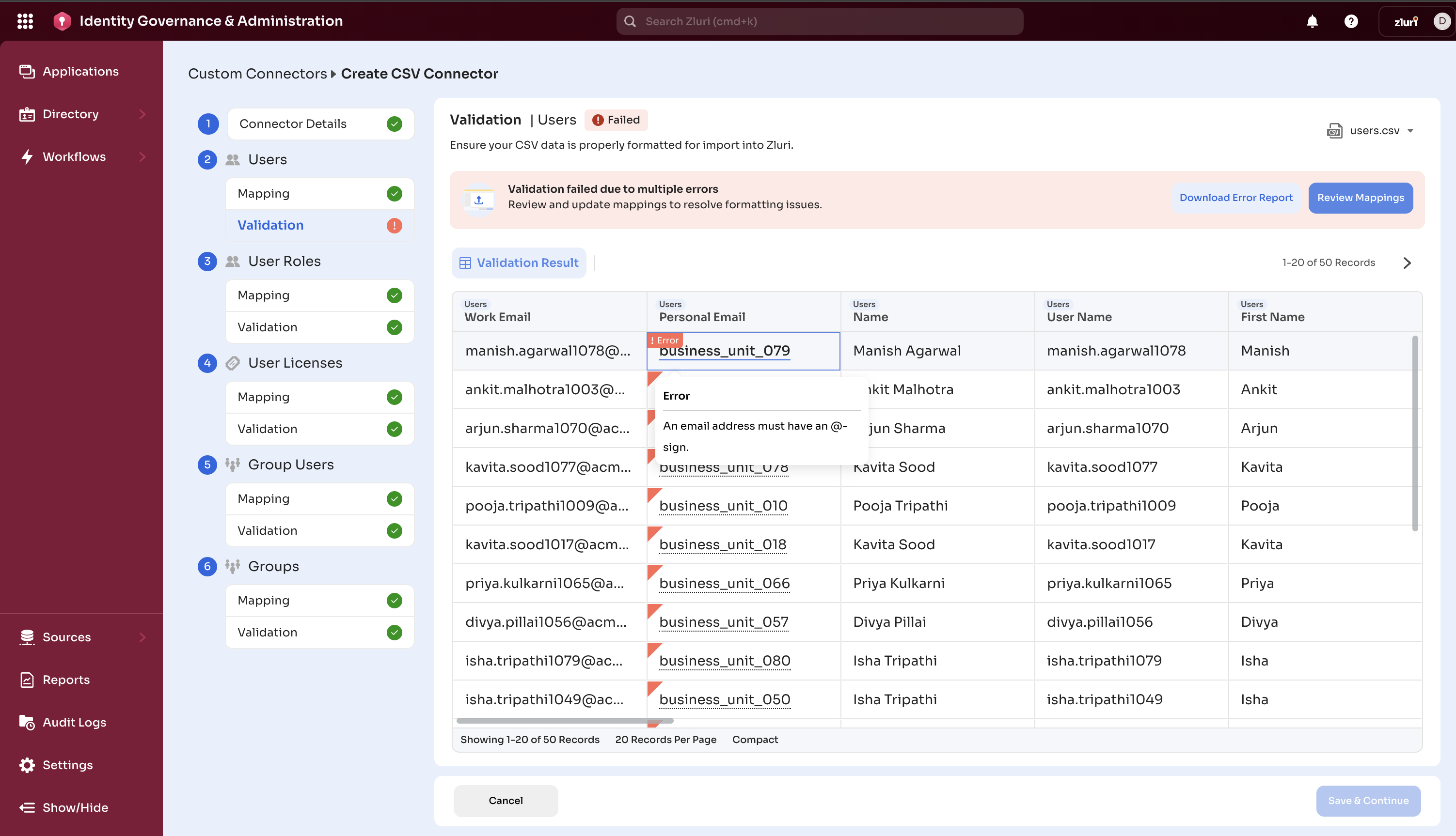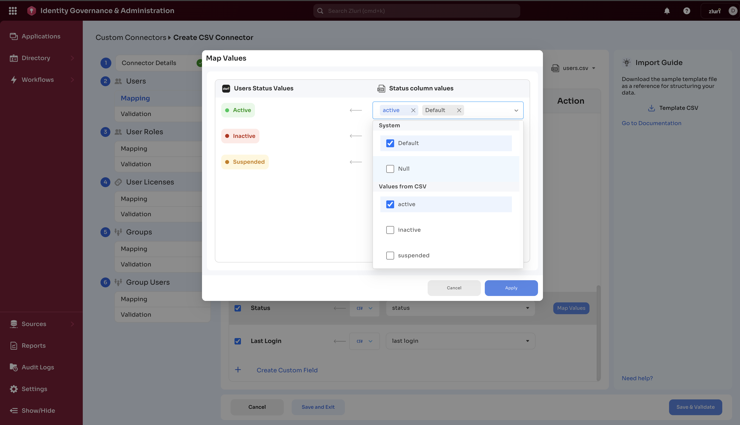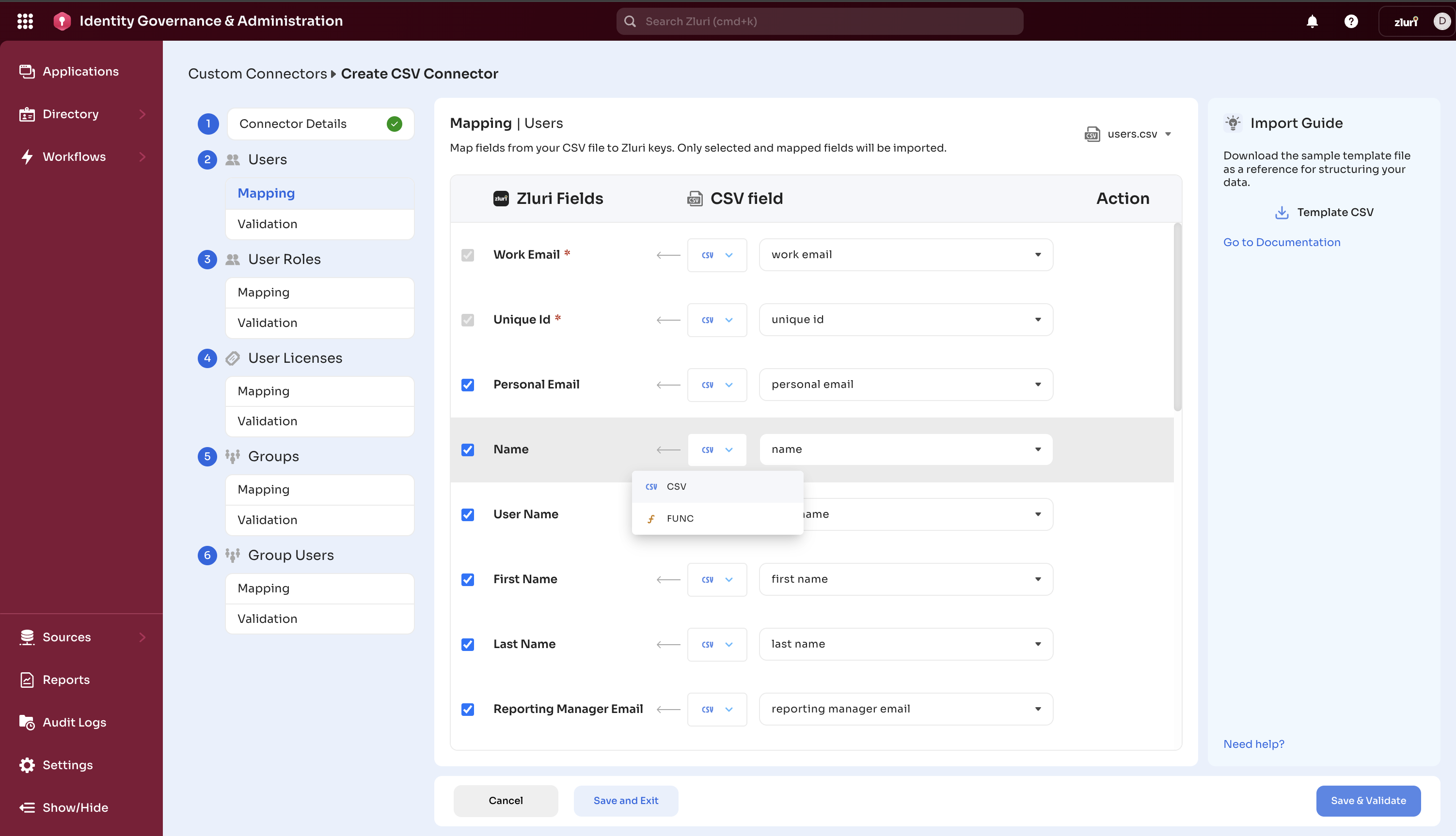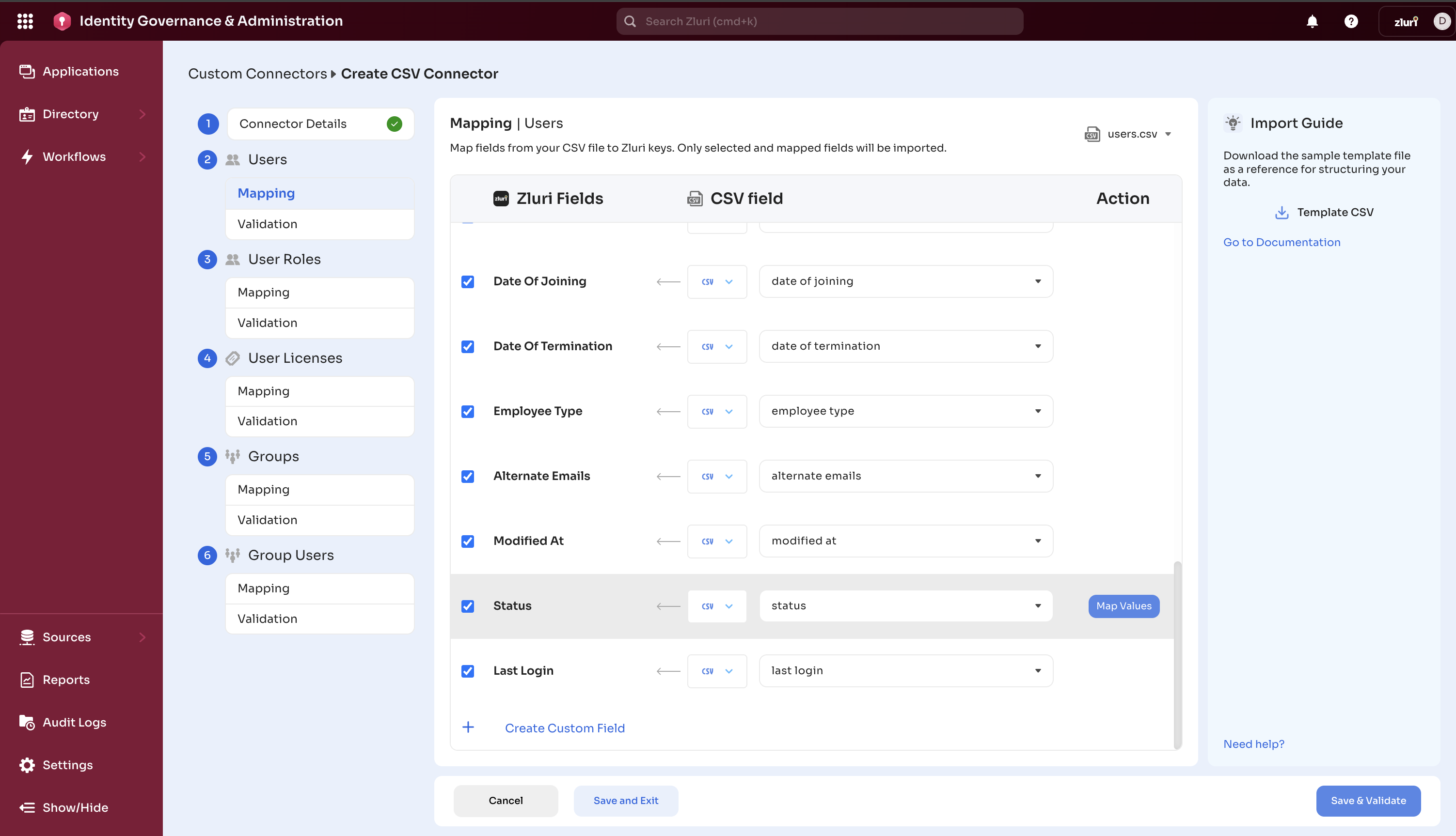 This is the most important step - telling Zluri which columns in your CSV match which fields in Zluri.