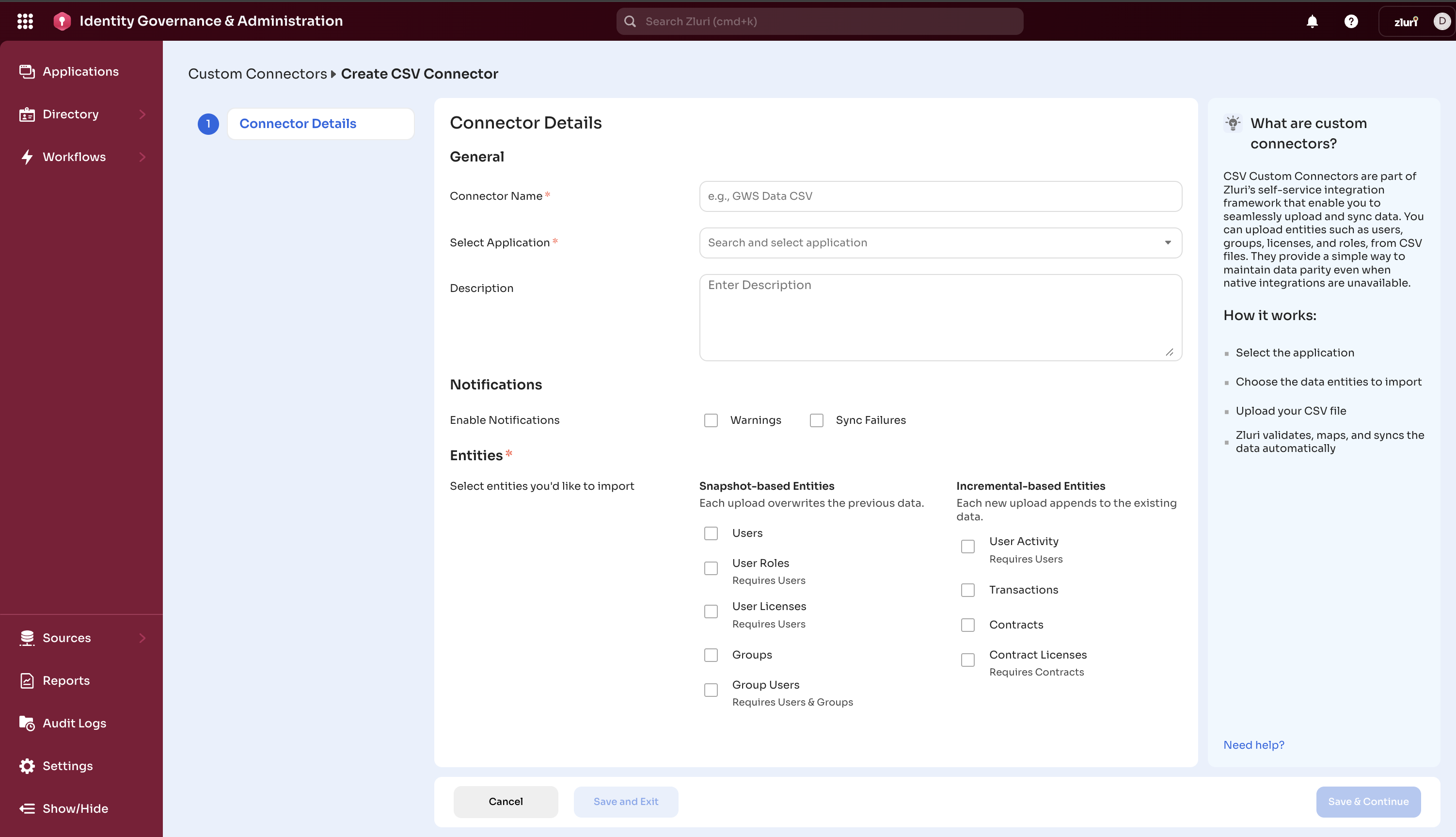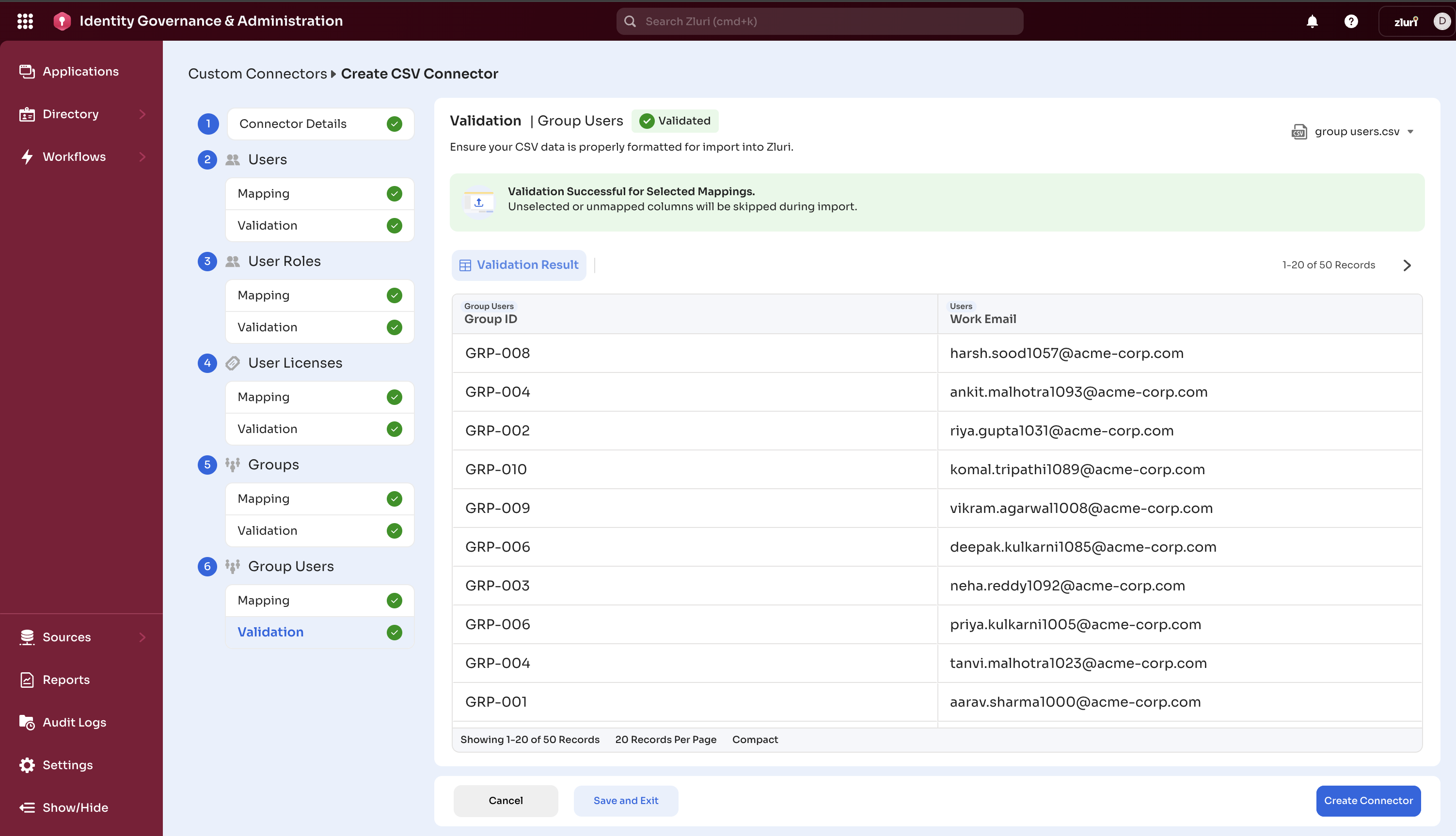 Connector Name: Give your connector a descriptive name (e.g., “HR System Users”)