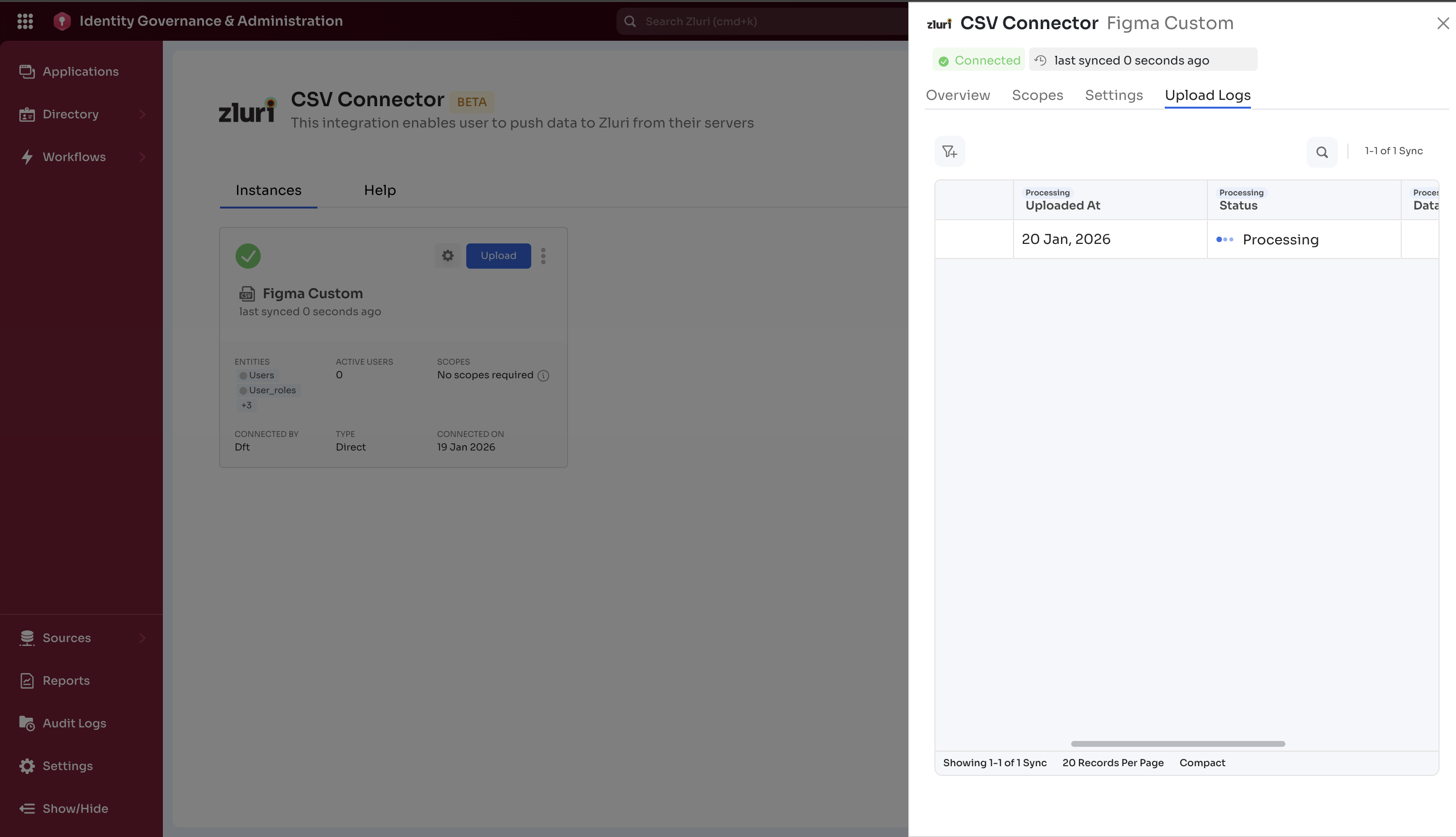 - Warnings (recommended): Post data validation if there are any skipped or validation failures, but the data is processed, Zluri will share warning notifications with failed records.