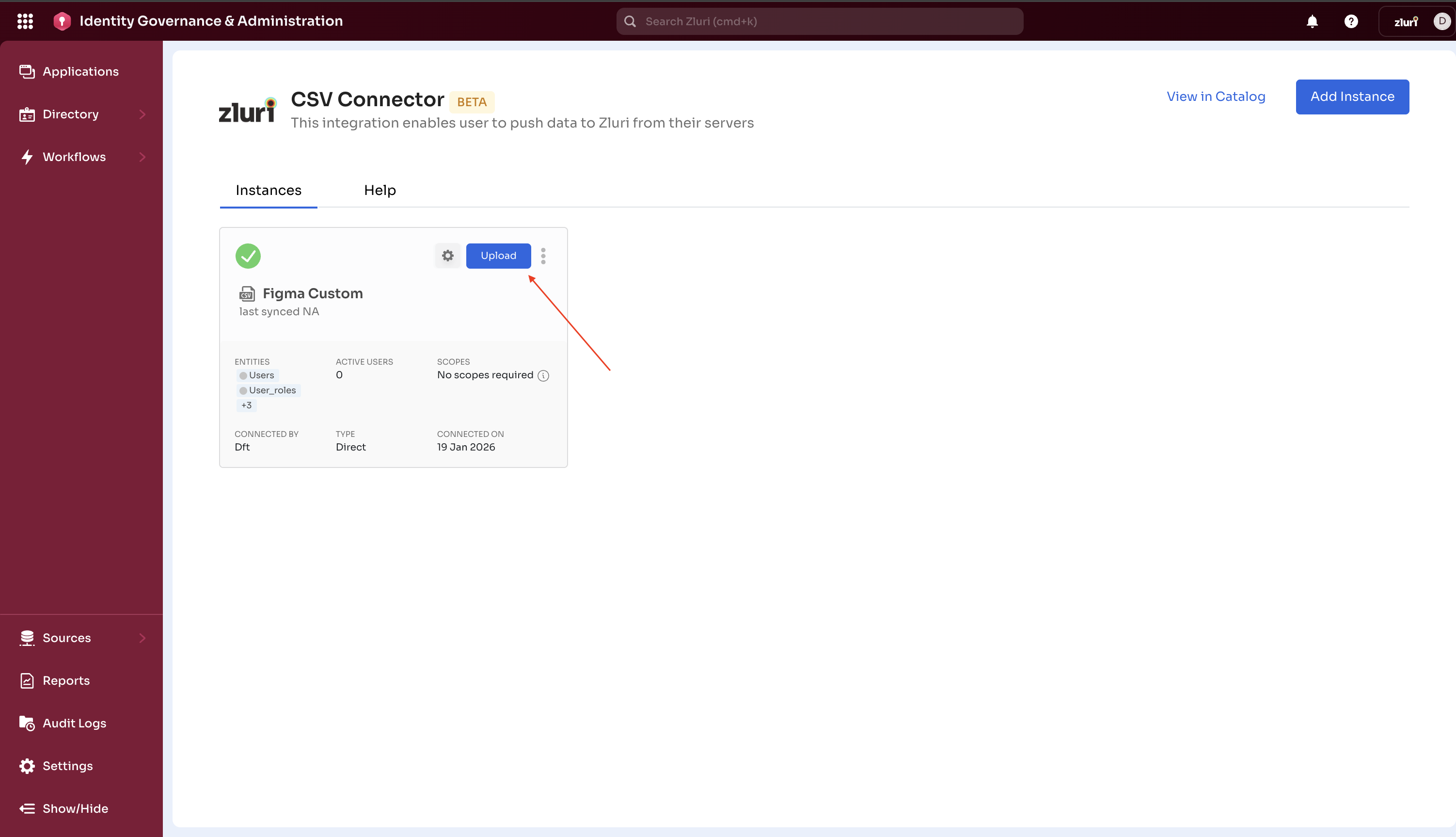 Navigate to Sources > Integrations > Connected > CSV Connector
