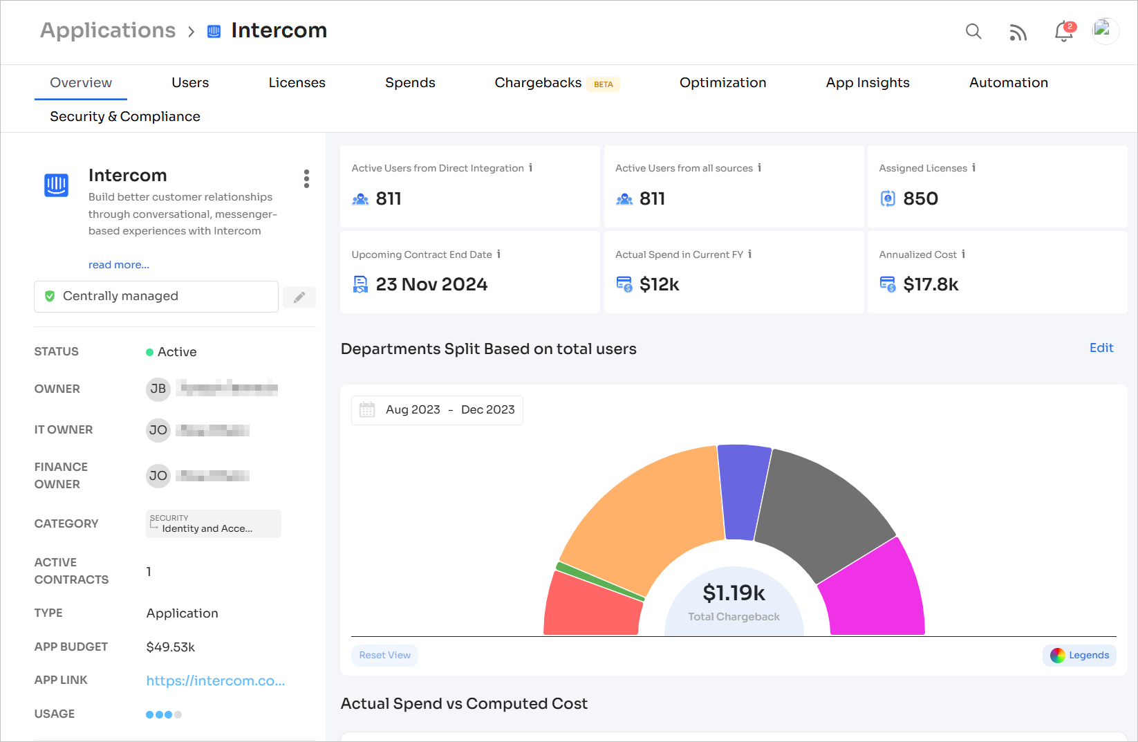 Zluri lets you discover which users have Intercom accounts, how frequently they use them, and optimize spendings based on this data. You can also create and modify users and teams manually or using workflows.