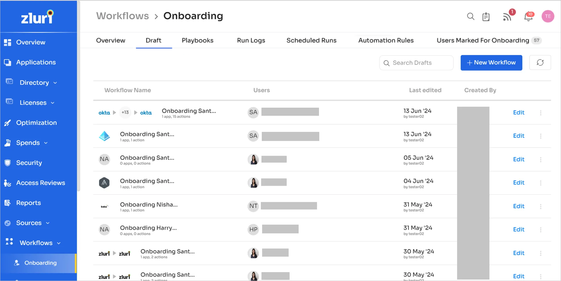 Use onboarding workflows to automatically create user accounts for new employees, assign them license(s), and/or add them to groups for different applications when they join the organization.