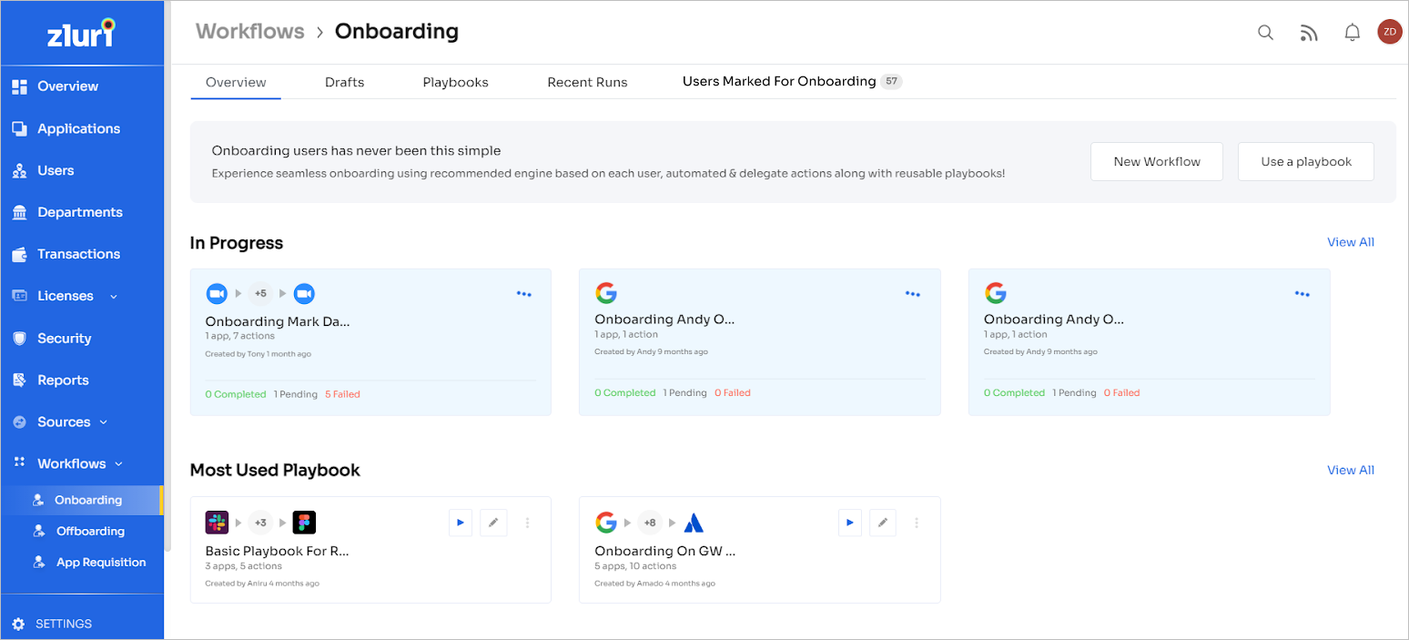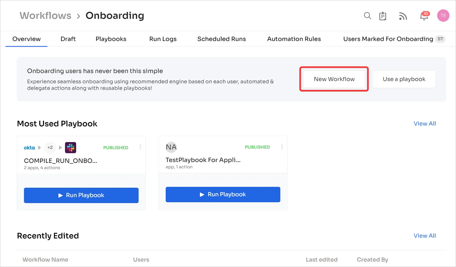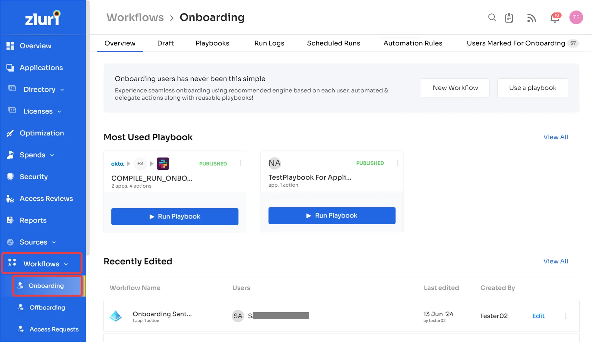 You can access the onboarding workflows by navigating to Workflows → Onboarding in the navigation bar.