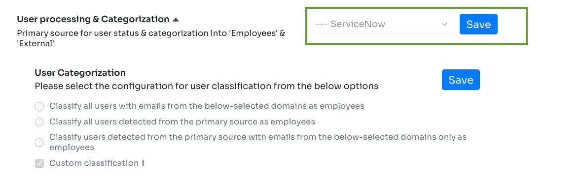 When we select a primary source from Settings, that primary source determines user classification (Employee/External) as well as user status for all the users in the org coming from that primary source.