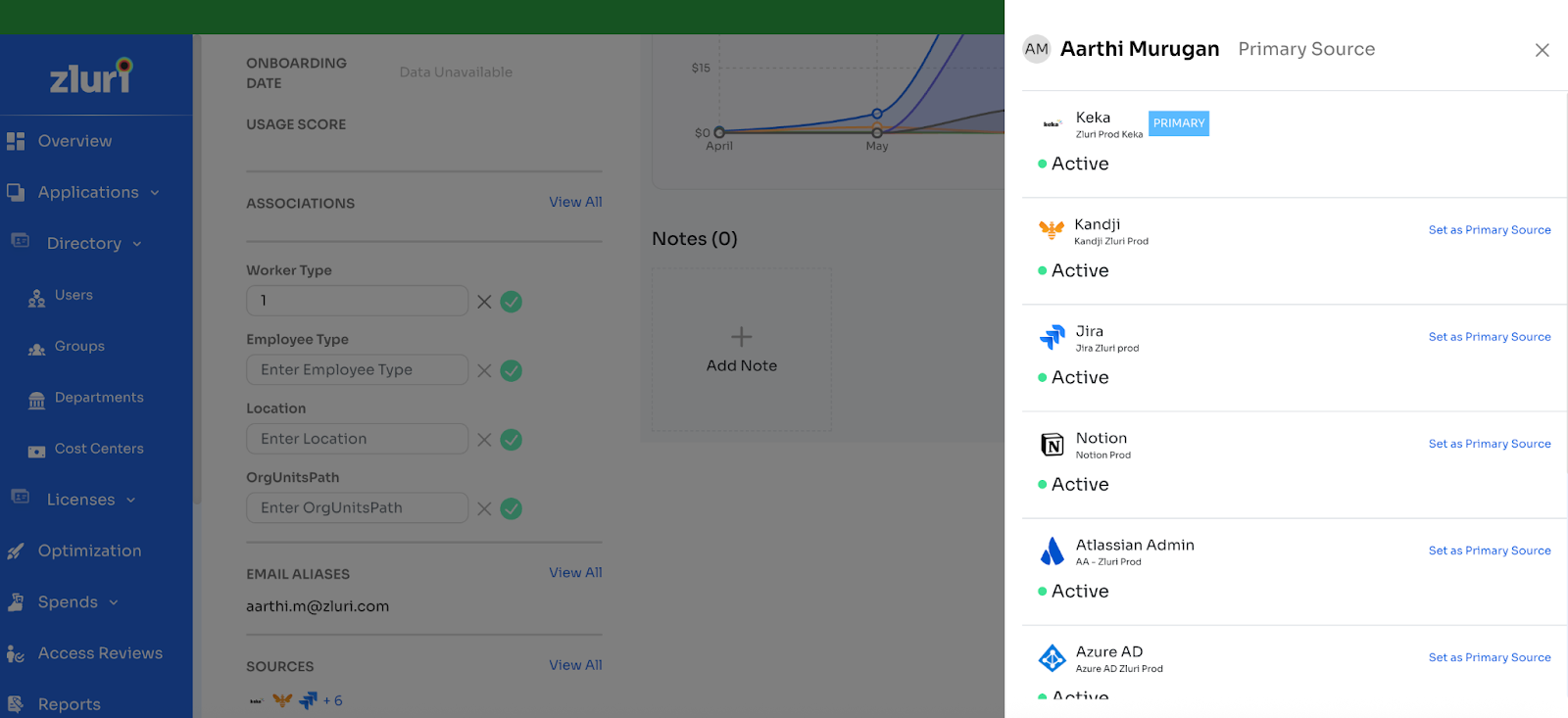 After the user’s primary source is decided, the status of the primary email coming in from the primary source is set as the status of the user in Zluri.